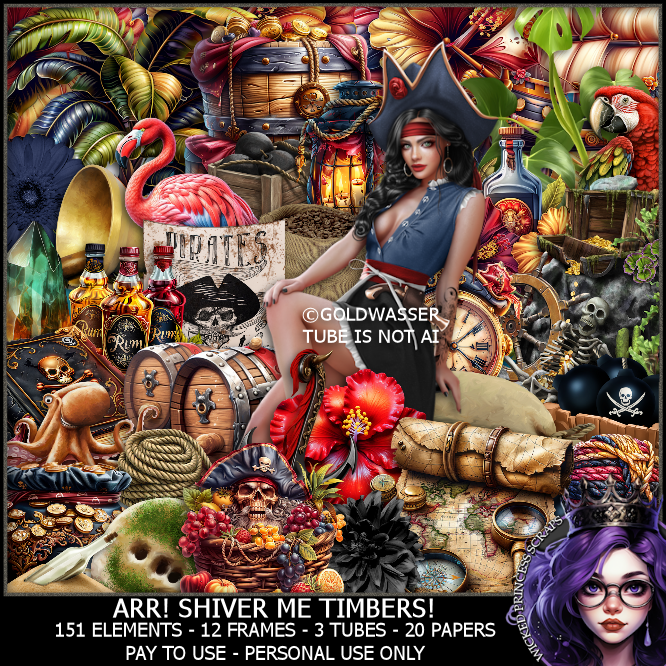 New tag featuring Wicked Princess Scraps gorgeous kit "ARR! Shiver Me Timbers!".